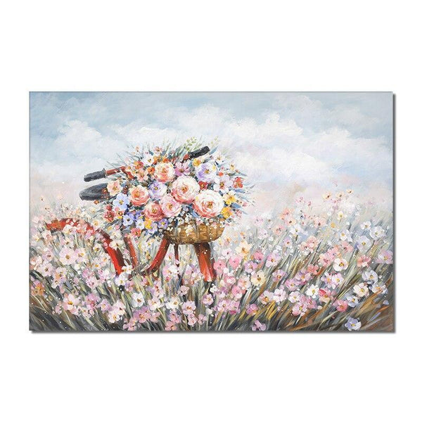 Hand Painted Bike Flower Oil Painting Modern Beautiful Landscape Canvas Painting House