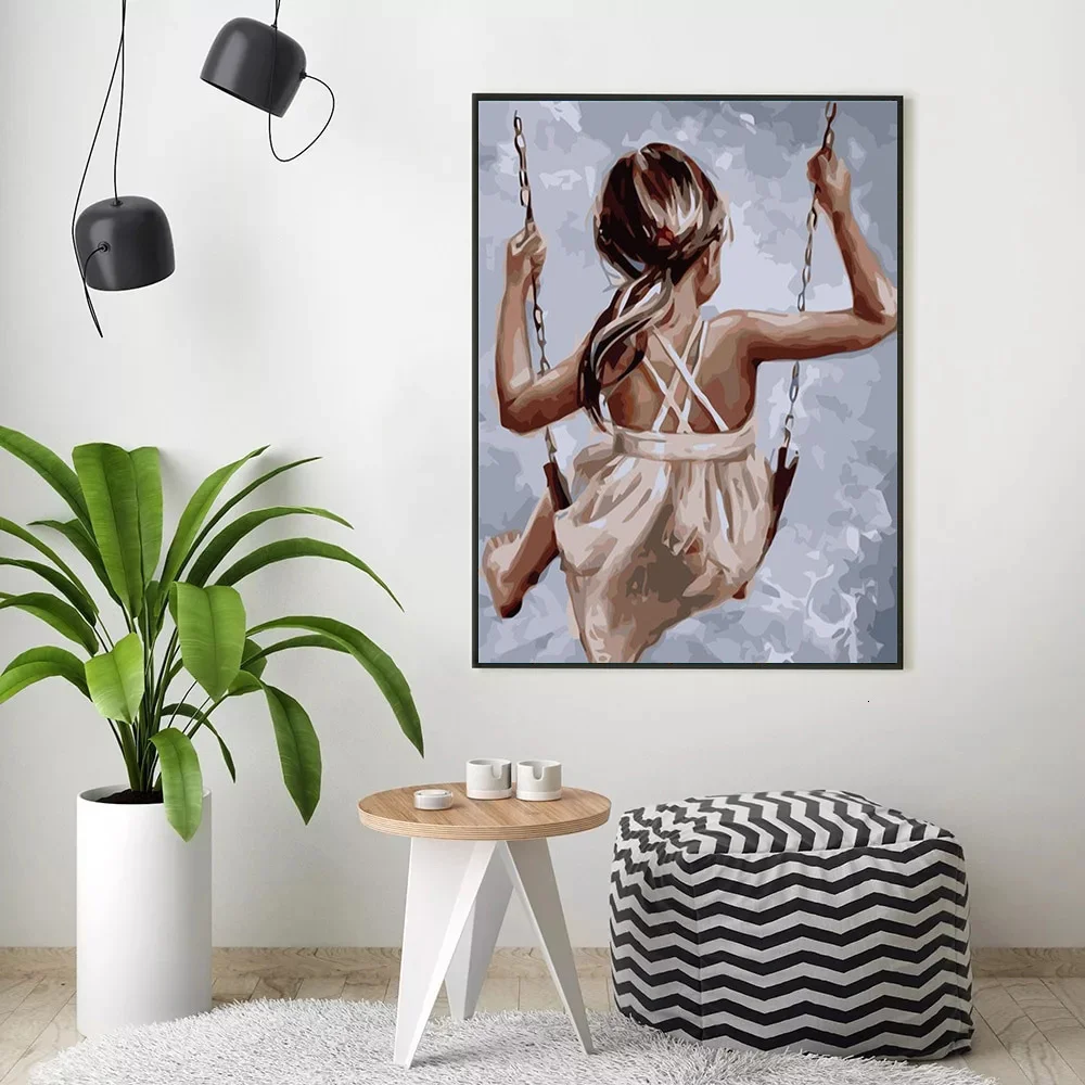 DIY Painting By Numbers Girl Kit Drawing On Canvas Wall Art HandPainted Home Decor DIY Gift