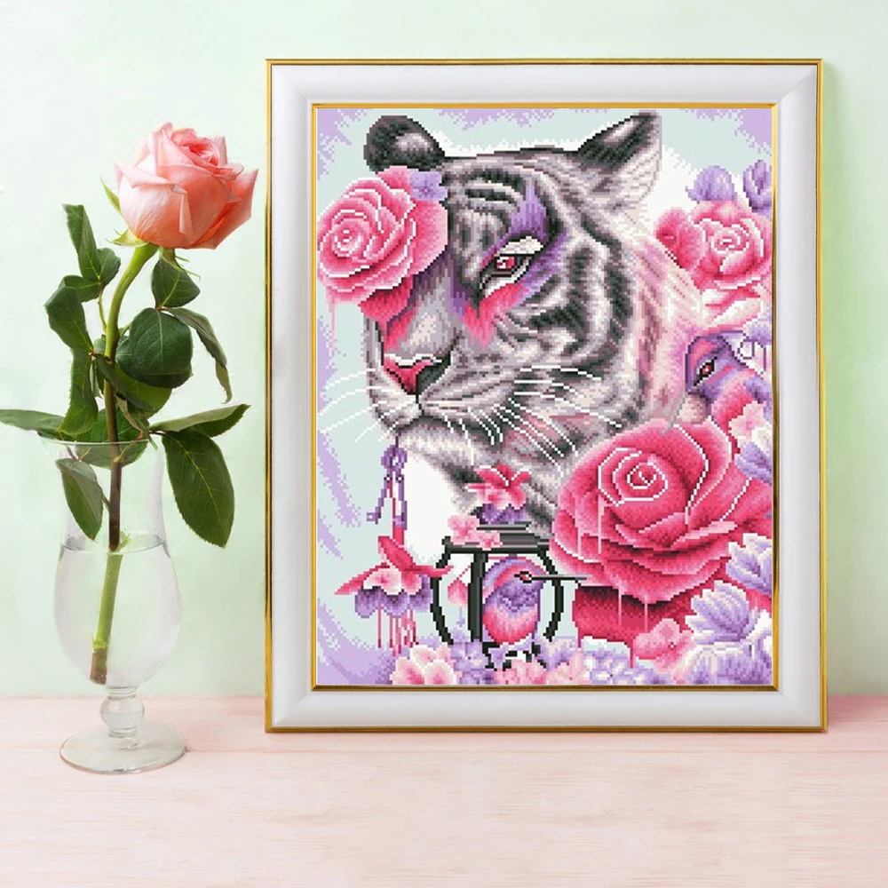 DIY Diamond Painting Kit Animal Tiger 5D DIY Diamond Rose Rhinestones Mosaic Home Decor