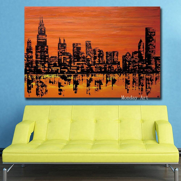 Hand Painted Canvas 3D city building Abstract Wall Painting