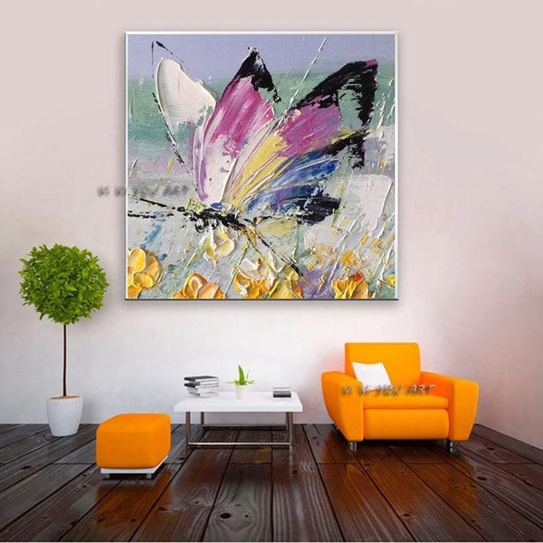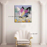 Hand Painted Modern Oil Painting Animal Painting Beautiful Butterflies Canvas Art Wall Sticker